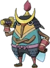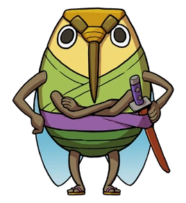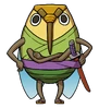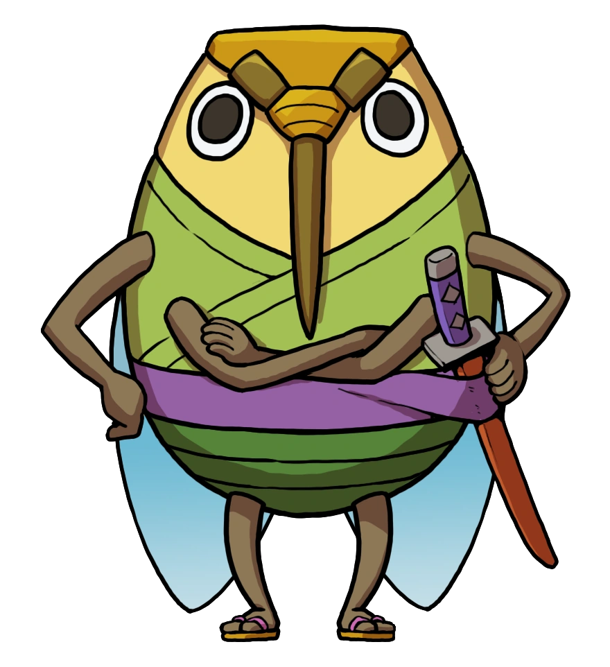 C'est une cigale de couleur ocre avec un kimono vert clair et une ceinture violette. Il possède quatre bras et un rostrum (sorte de trompe) marron ainsi que deux ailes. Il a également un petit katana.
