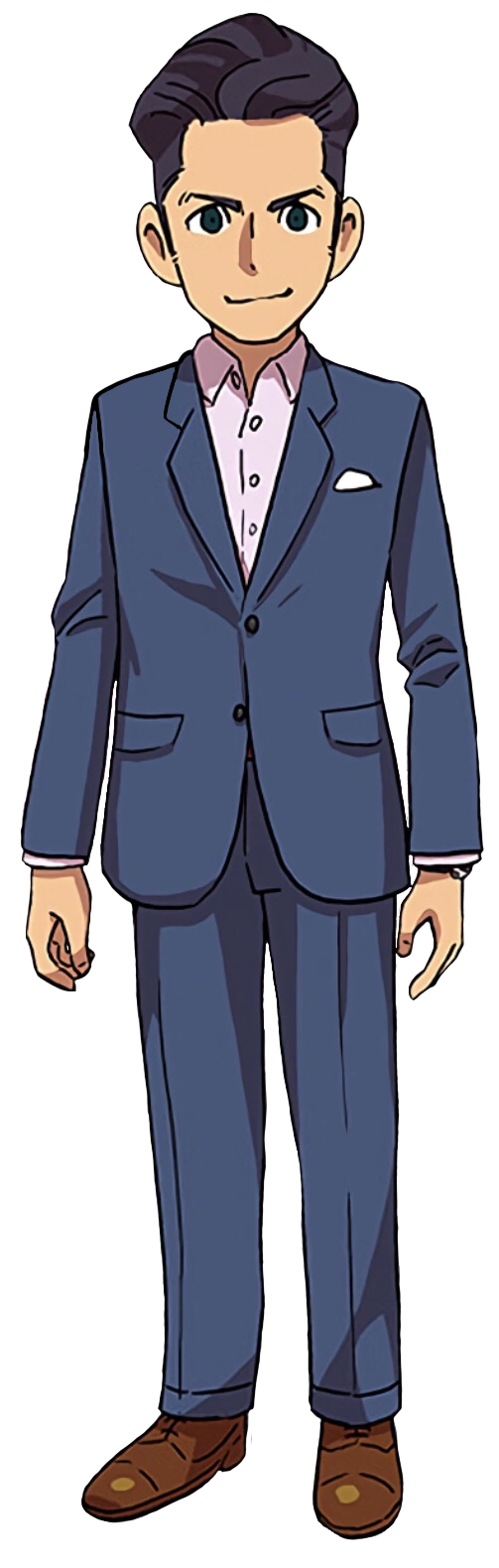 C’est un homme plutôt grand, il a des cheveux courts et des yeux noirs. Il porte une chemise blanche, un costume et un pantalon bleu foncé. Il a des chaussures marrons.