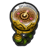 Cette Yo-kai Watch est marron avec des contours dorés en forme de pétales de fleurs. Le bracelet est en perles vertes et noires, et l'intérieur de la montre est composé d'une aiguille brillante, de petits tourbillons roses à chaque quart d'heure, et des quatre points cardinaux.