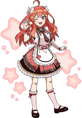 Itsuki (Valentine's) appeared in the "The Quintessential Quintuplets Second Collaboration" Event that lasted from February 1st, 2025 until November 15th, 2025. There was a chance of befriend her in the limited The Quintessential Quintuplets Collaboration Gasha, she gave the damage bonus & nullification of damage ball on Miku (Valentine's) boss stage located in the Back: The Quintessential Quintuplets Collaboration (Japanese: 裏・五等分の花嫁コラボ,Ura ・ Go-Tōbun no Hanayome Korabo) map. Additionally, she deals more damage in Miku (Valentine's) ohajiki boards & she raises Oshi Points in Itsuki's team.