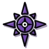 The emblem design resembles a purple sun with a round eye looking circle in the middle.