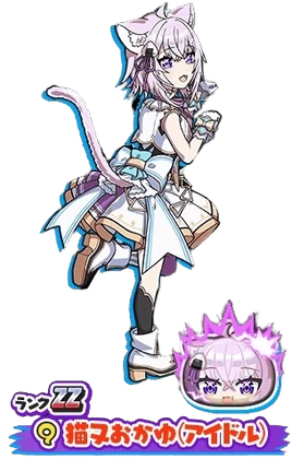 Nekomata Okayu (Idol) (Japanese: 猫又おかゆ(アイドル) Nekomata Okayu(Aidoru)) is a Rank ZZ Yo-kai of the Mysterious tribe exclusively in Yo-kai Watch: Wibble Wobble. She debuted as part of hololive "GAMERS" generation in the Hololive Virtual Talent agency.