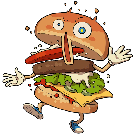 - "Oh-burger" is a combination of "oh" - from his catchphrase "Oh my God!", implying that he is often easily startled and/or overreacts in many situations - and "burger" - because he has the body of a burger. It is possible that Oh-burger is also a play on the word "obaka" ("stupid").