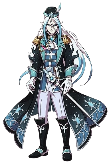 Prince Nurarihyon wears a black navy uniform with snowflake patterns, under the uniform is located a blue jacket. He wears white pantes under a pair of boots. He is wearing a cap.