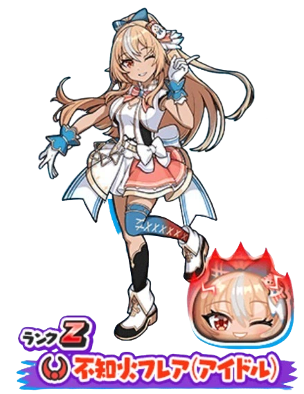 Shiranui Flare (Idol) appeared in the "Hololive Third Collaboration" event that lasted from January 1, 2024, to January 16, 2024. She could be befriended after purchasing the starter pack for only ¥1.000. She gave the damage and defense bonus against the Tsunomaki Watame boss stage located in the Wildwood Shrine (First Visit) (Japanese: おおもり神社(初詣) Ōmori jinja(Hatsumōde)) map. Additionally, she dealt more damage in Sakura Miko (Idol) punitto shot boards & gave the damage and defense bonus in the following maps: